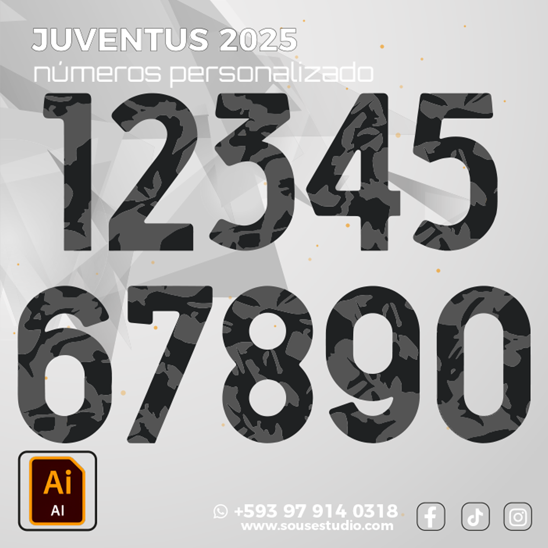 Este archivo en formato AI (Adobe Illustrator) no solo es ideal para diseñadores gráficos, sino también para tiendas de personalización textil, imprentas y emprendedores que desean ofrecer productos deportivos de calidad. El vector Juventus Números Personalizados (free download) es una base perfecta para diseñar camisetas de fútbol profesionales, con un acabado moderno y totalmente adaptable.