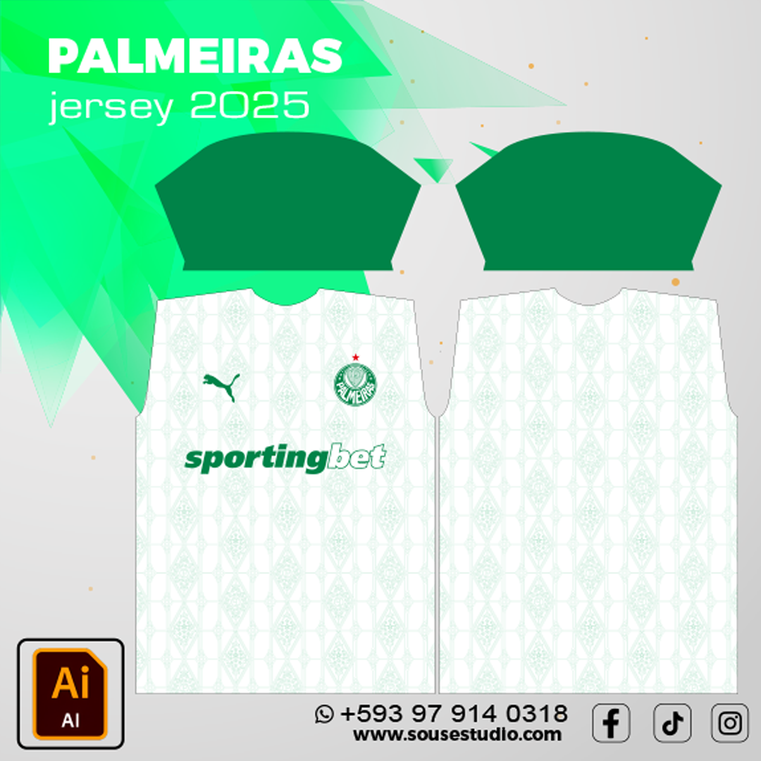 El Vector Jersey Diseño Jersey Palmeiras 2025 en formato Adobe Illustrator (AI) es la opción ideal para diseñadores, emprendedores y negocios que buscan un archivo 100% editable y escalable para la creación de camisetas deportivas personalizadas. Este diseño profesional está completamente vectorizado, lo que garantiza que cada detalle se mantenga nítido y en alta resolución, sin importar el tamaño o método de impresión.